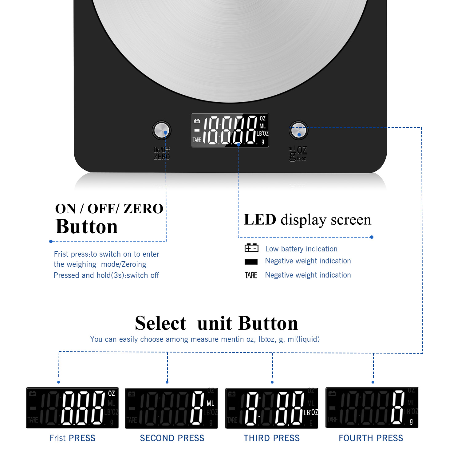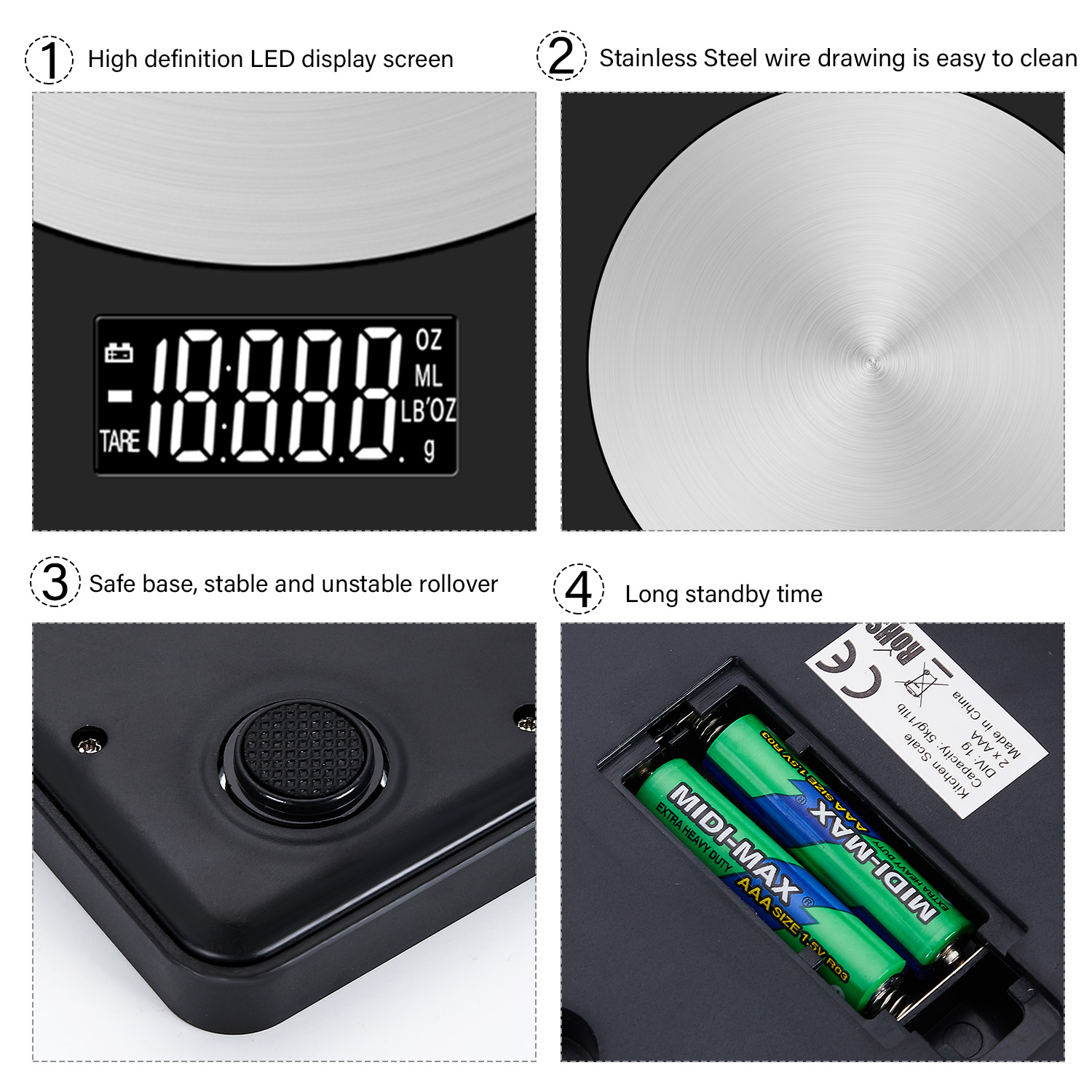 - 【Stainless Steel】The kitchen scale made of high-quality Stainless Steel easy to clean and maintain and provide dustproof, sterilization, hydrophobic function.