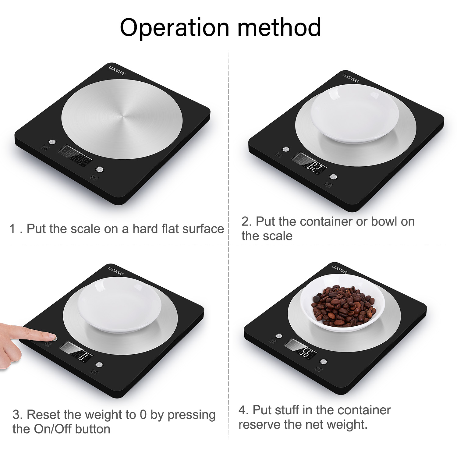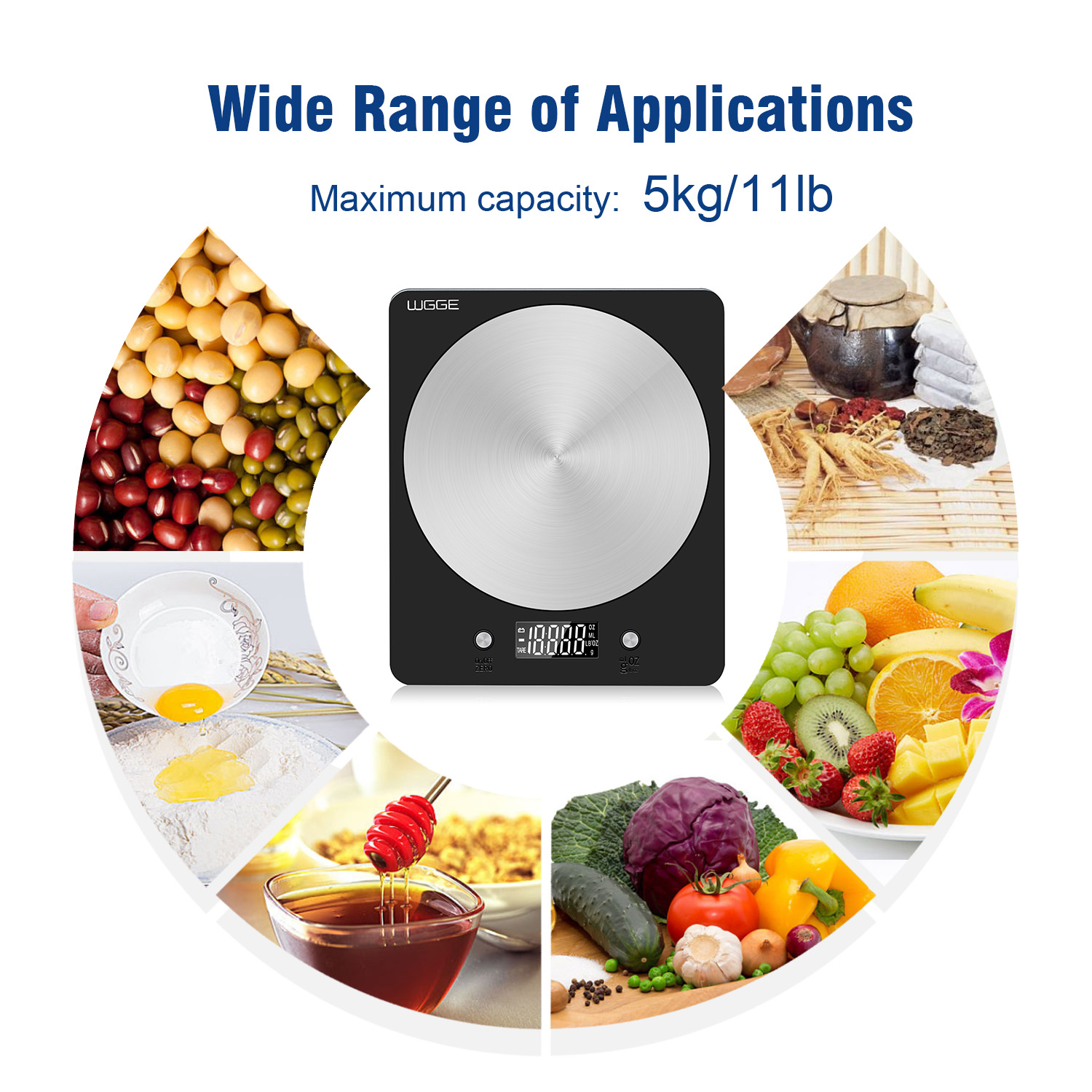 【Accurate & High-Precision Measurement】Our digital kitchen scale built with high precision strain gauge sensor system with accurate weight capacity 11LB/5KG ,accurate to 0.1oz/1g. The clear LCD display units lb, oz, g, ml, and fl.oz;【Stainless Steel】The kitchen scale made of high-quality Stainless Steel easy to clean and maintain and provide dustproof, sterilization, hydrophobic function.【Saving Energy】The scale design with auto off function with low battery and overload indication, that automatically power-off after 2-minutes to preserve battery life. Including 2 AAA batteries. 【Easy Tare】 The features tare and auto-zero functions for easy compatibility with other containers; measure in a mug, plate, or different sized bowl with dependable and hassle-free accuracy. The sensitive touch control buttons for easy operation with a clear large LCD display. 【Product Guarantee】30 days guaranteed,12 months manufacturer warranty and 24 hours WGGE customer service. We are dedicated to providing 100% customer satisfaction.